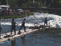 Bau eines Floßes für eine Fernsehaufzeichnung